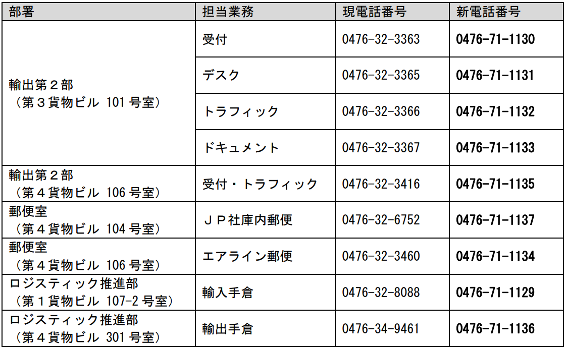 つきましては、連絡先が下記の通り変更となりますので、ご連絡先を変更下さいますようお願いいたします。
